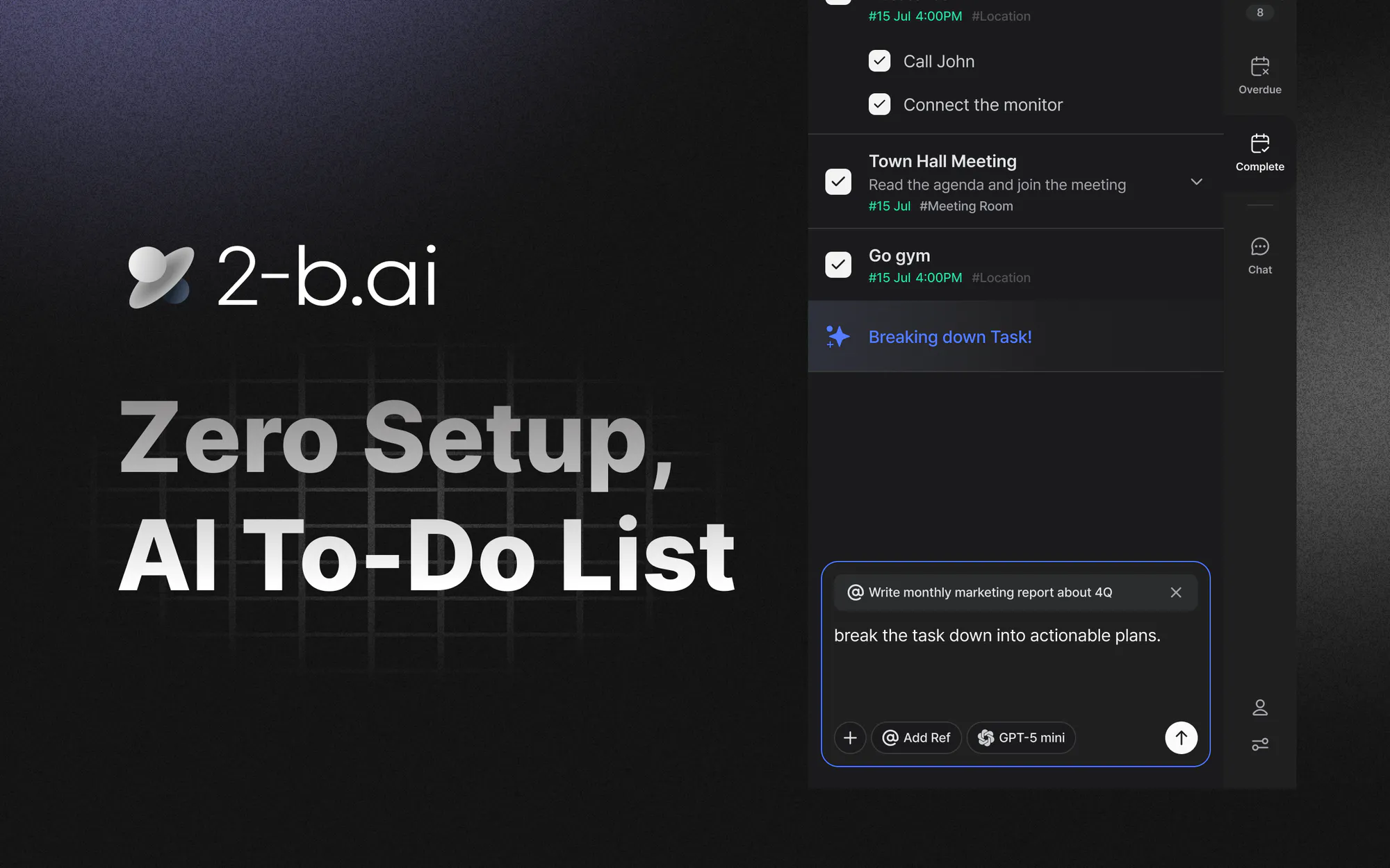- 2-b.ai combines the structure of a task manager with the brain of an LLM inside your browser.