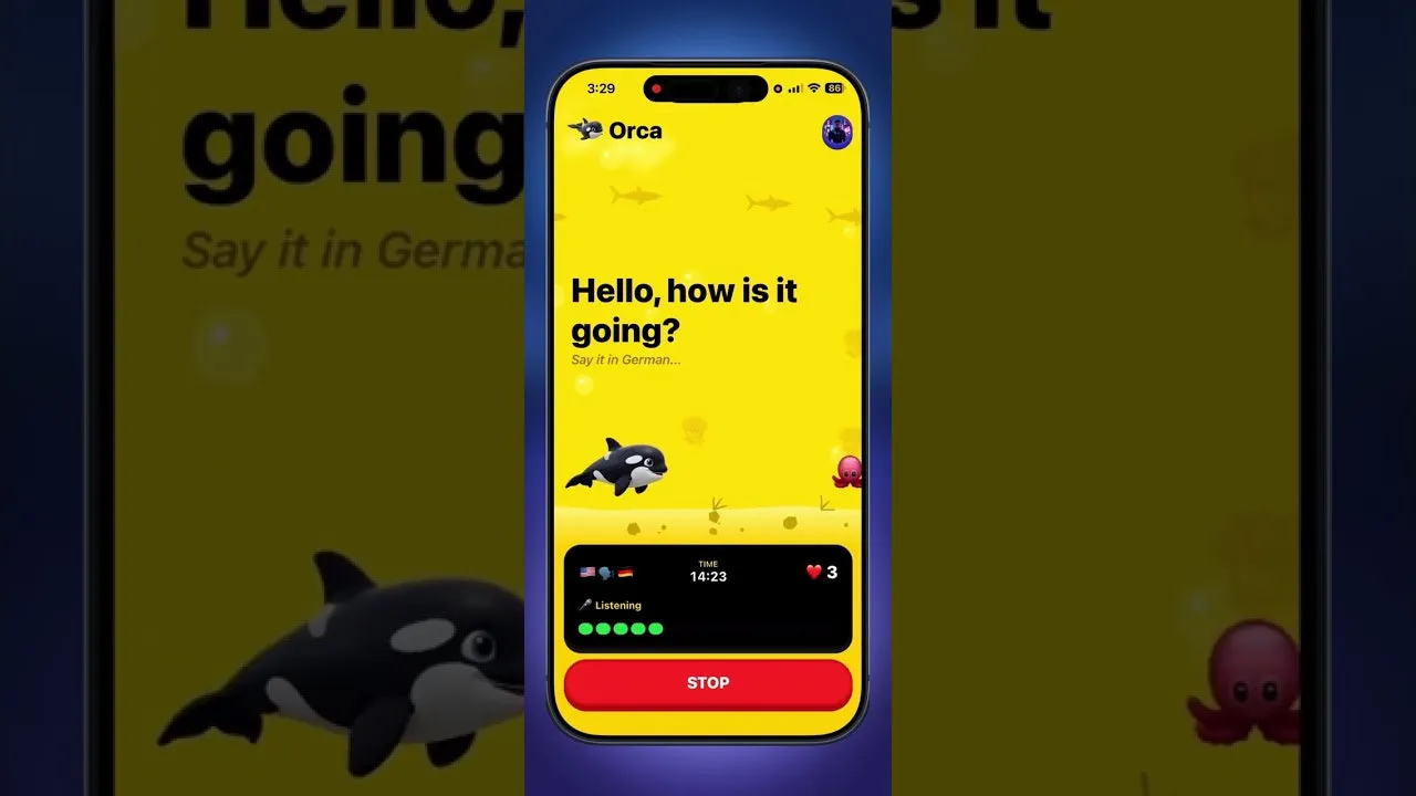 Orca makes learning a new language fun and effective. Designed to help you speak fluently and build confidence, it offers bite-sized lessons focused on real-life phrases. Each level teaches 15 everyday expressions, followed by an interactive pronunciation game to ensure mastery before progression. The app lets you challenge other learners, climb the leaderboard, and stay motivated while improving speaking, listening, and reading skills for real conversations. Whether you're starting out or looking to practice, Orca turns language learning into an engaging experience, helping you gain practical skills for everyday use.