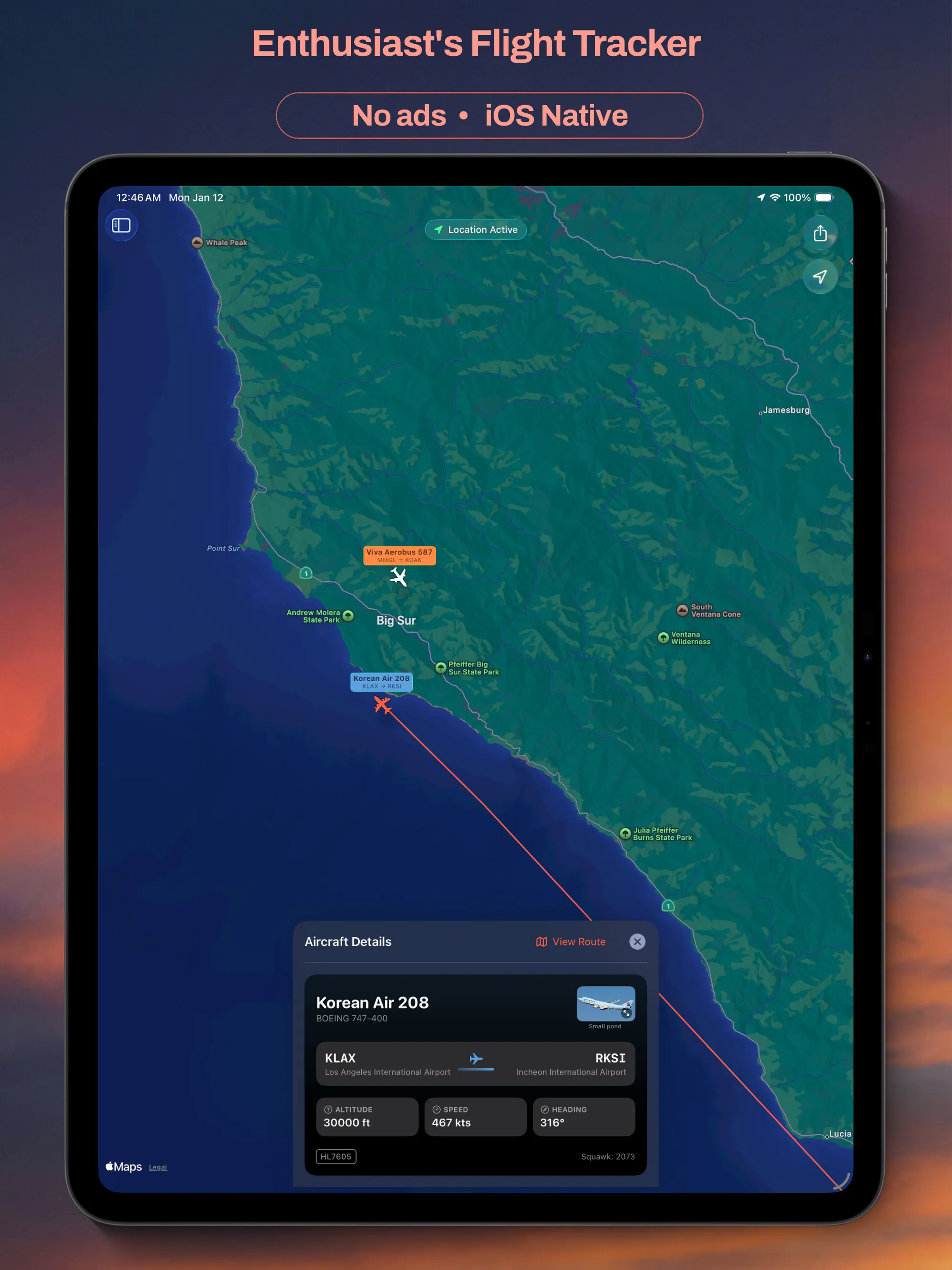 Need ad-free, real-time flight tracking with Siri, widgets, and fast ADS-B map for iOS