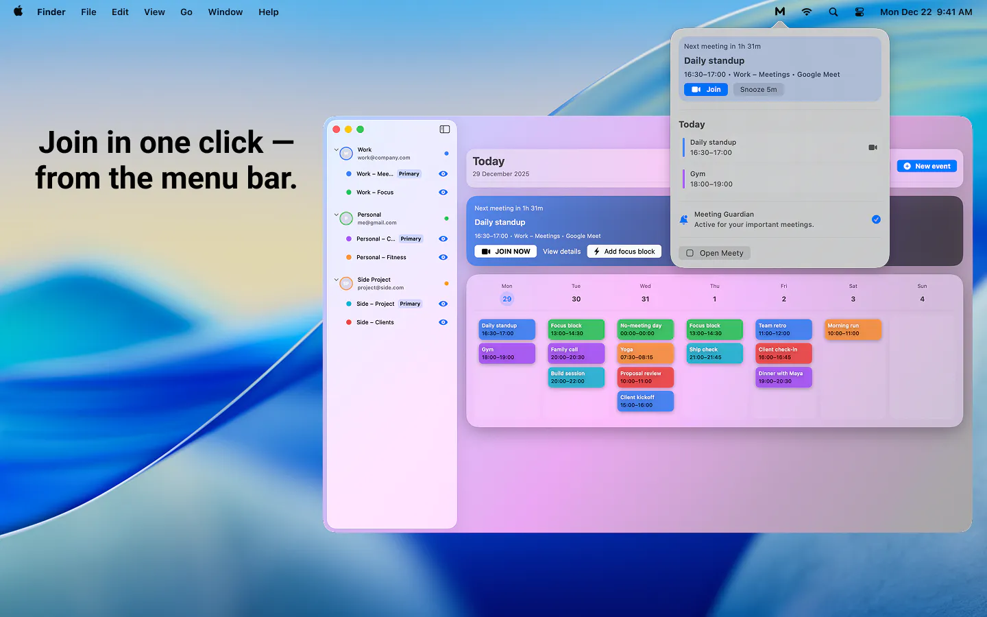 macOS users who need quick Google Calendar access, meeting joining, and reliable reminders