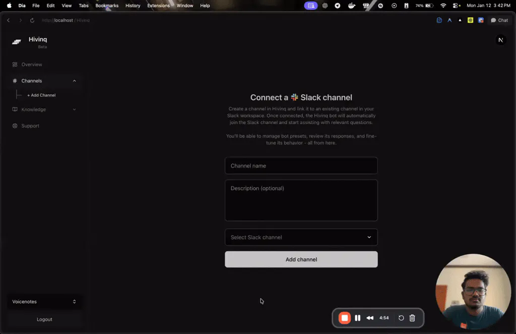 - Hivinq acts as a Copilot for customer support in Slack, drafting responses using product knowledge instead of replying directly to customers.