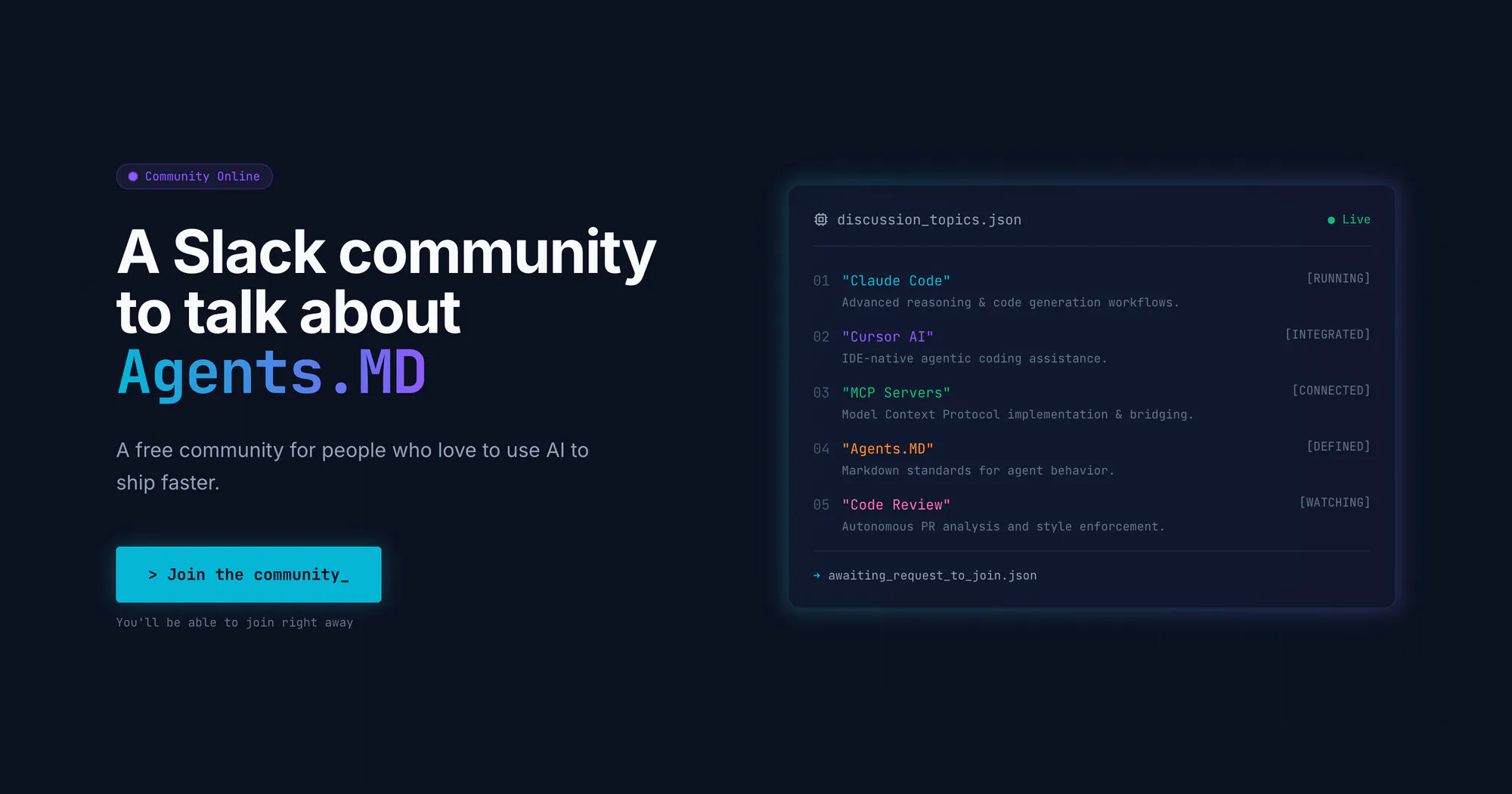 Humans in the Loop is a free community dedicated to agentic-coding-AI enthusiasts. It serves as a platform for people who leverage AI to accelerate their development process, offering a space to connect, share insights, and exchange best practices. Members can discuss various topics including Claude Code, Cursor, MCP servers, and AI code reviews, among others. By fostering collaboration and knowledge-sharing, the community helps users enhance their AI coding skills and stay updated on the latest tools and techniques, ultimately enabling them to ship projects faster and more efficiently through the power of AI-driven development.