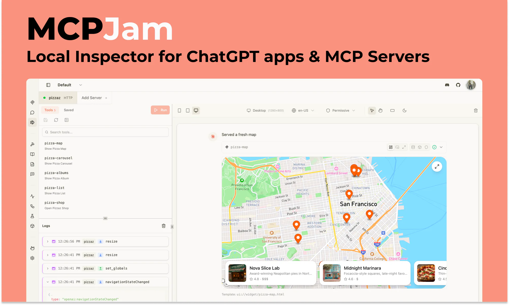 - Local testing tool for ChatGPT apps and MCP servers with widget emulator and LLM playground.