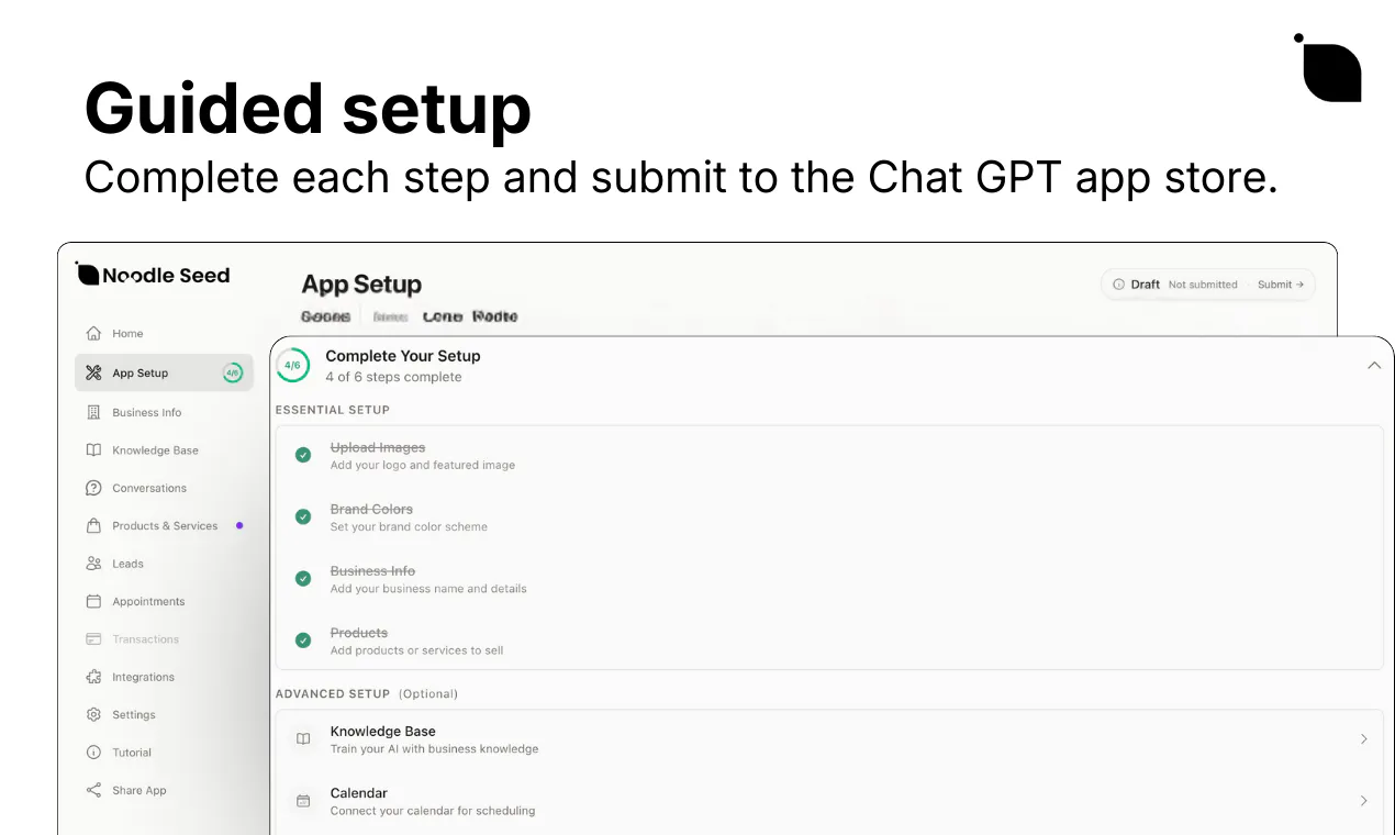- Capture leads, book appointments, sell products, generate FAQs and testimonials using AI, and upload docs to enhance app intelligence.