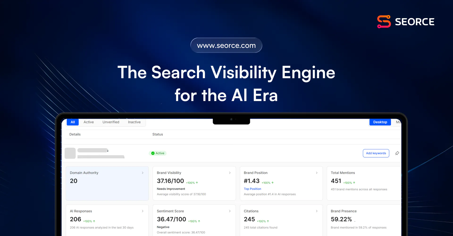 - SEORCE provides a unified view of brand discovery across search and AI platforms.