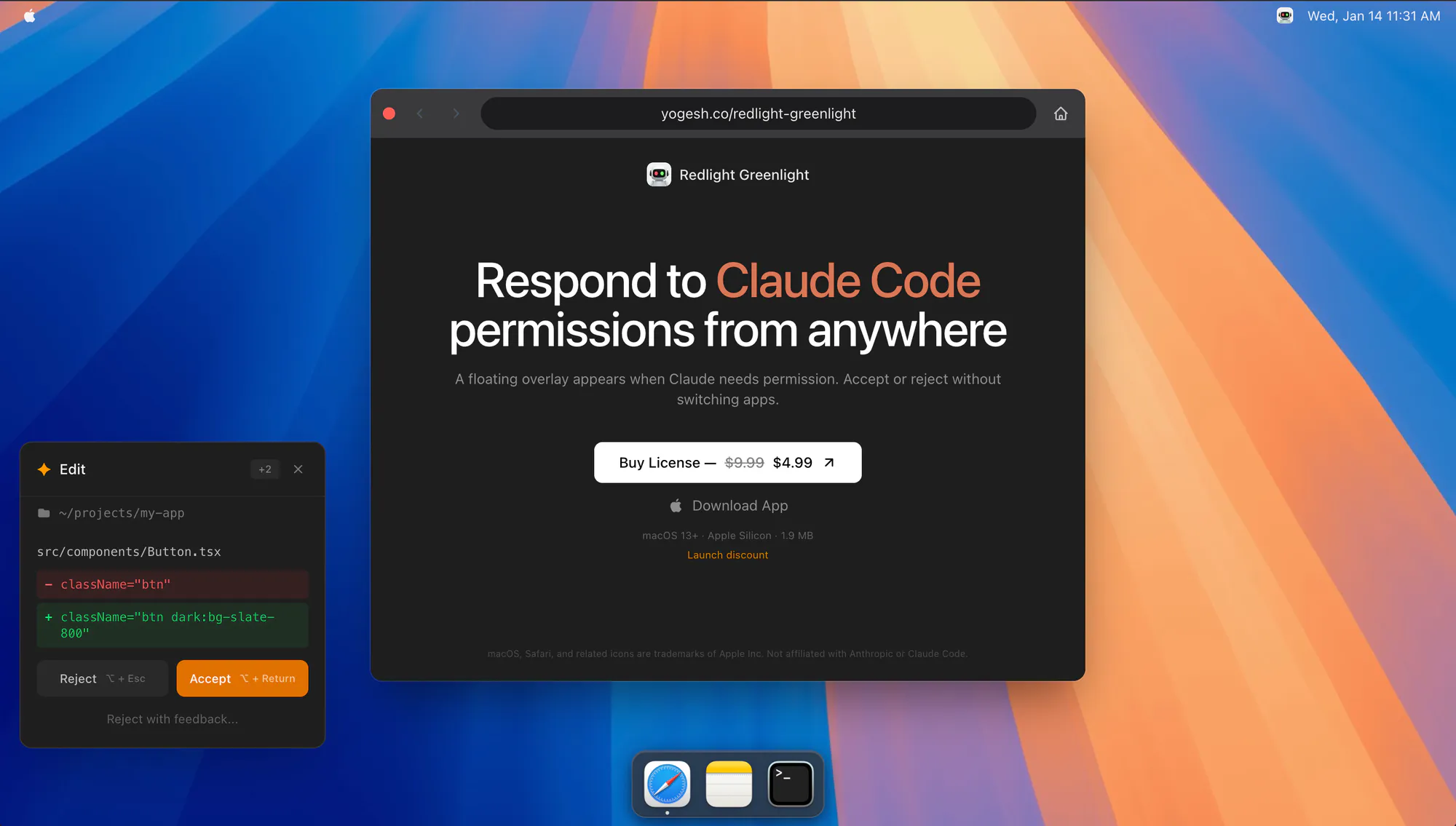 Need to accept/reject Claude Code permission without switching to terminal on Mac