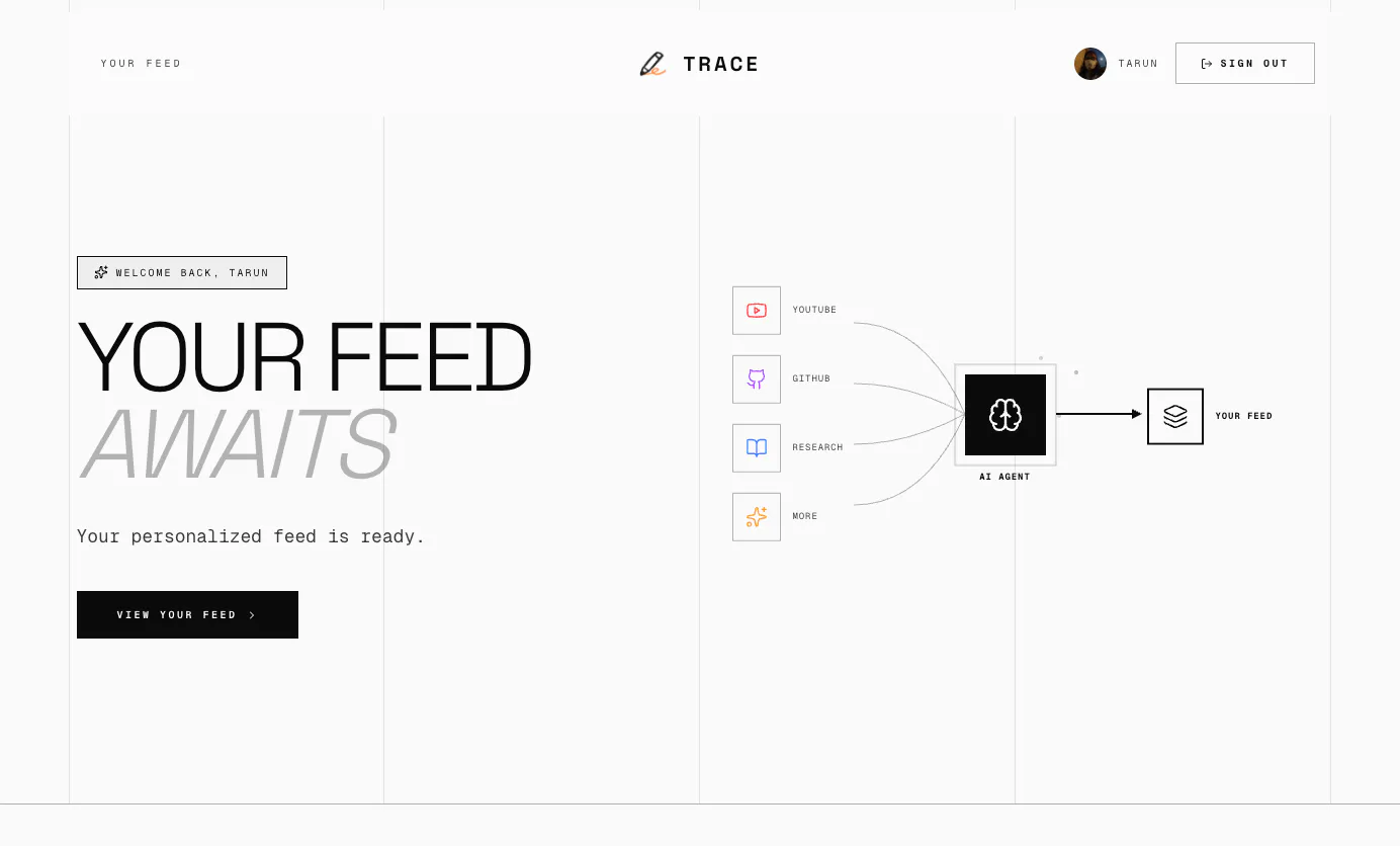 - Trace aggregates content from multiple sources like YouTube, Reddit, Hacker News, Medium, and X into a single platform.